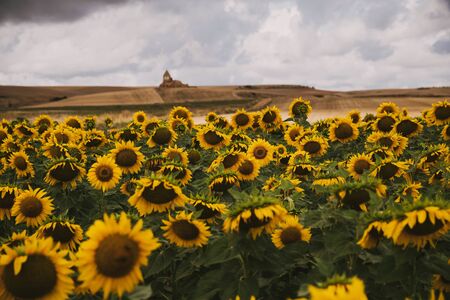 Landscape of Castilla and Leon with cloudy sky. Burgos, Spain