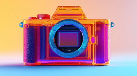 This image features a striking transparent camera design set against a colorful gradient background, ideal for creative photography and design concepts.