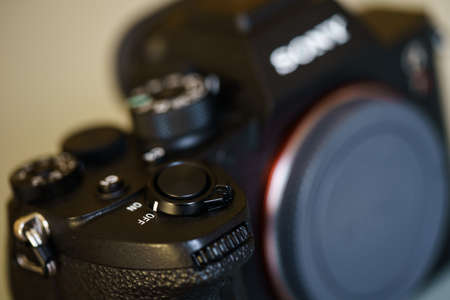 Michigan, US - Sep 29, 2019: Sony logo, part of brand new full frame Sony A7III mirrorless digital camera.