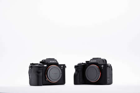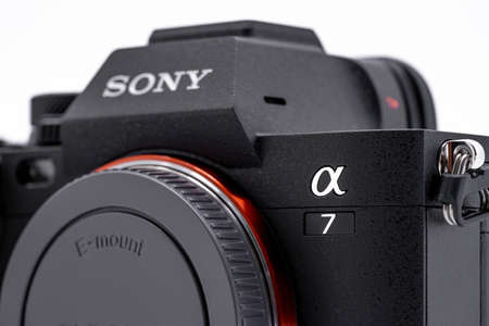 SHANGHAI, CHINA - APR 2018 : the Sony A7 RII mirrorless G master lens. Optical Steady Shot of Sony camera made with macro lens for editorial propose