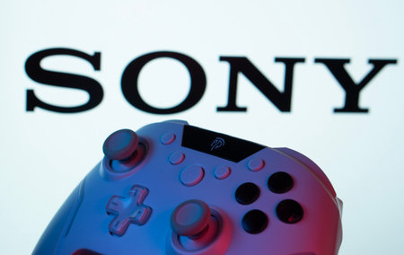 Dhaka, Bangladesh- 02 July 2025: A close-up of a gamepad with the sony seen on screen in the background.