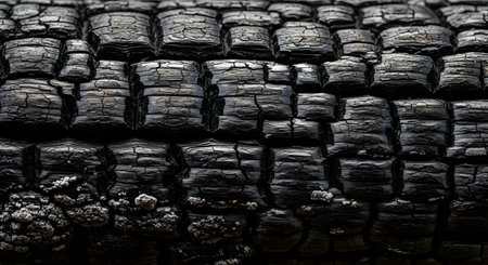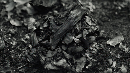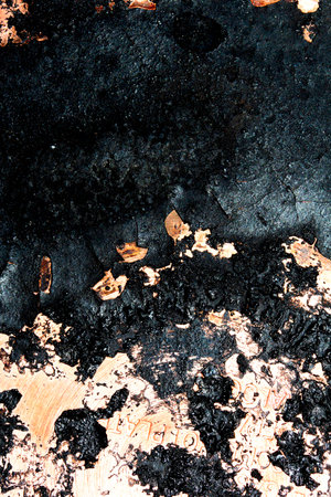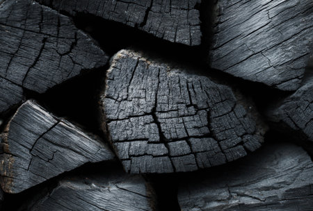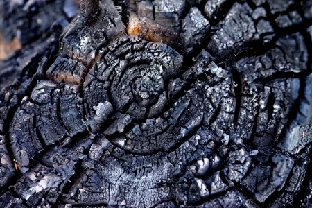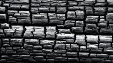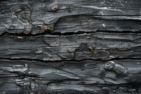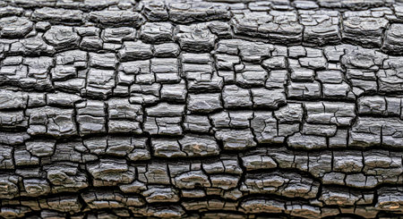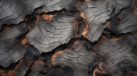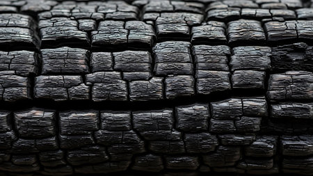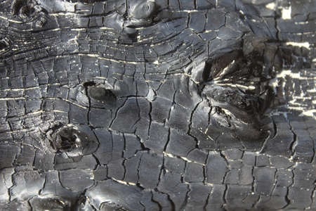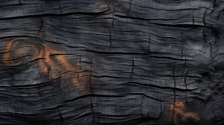 Close-up of charred wood, texture revealed with dark tones, a natural, abstract display