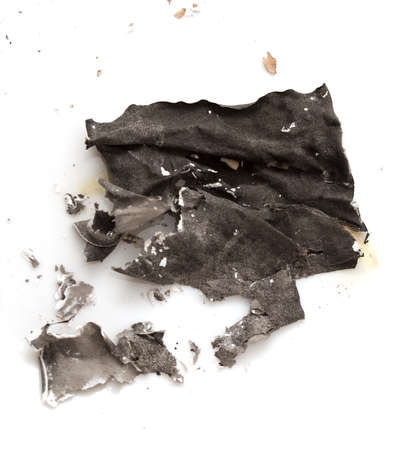 Burnt old piece of paper with small puncture holes visible through it due to small hot particles that burnt it through. Burnt through piece of paper.