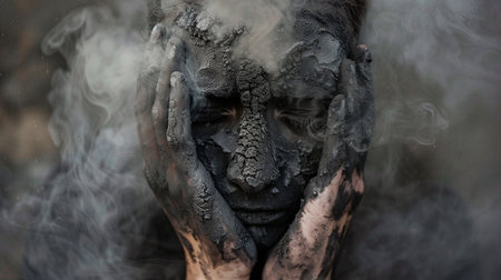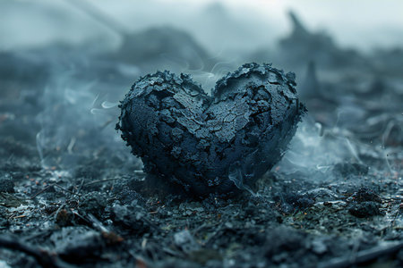 Dark charcoal cross and ash. Symbolic, dramatic, solemn.