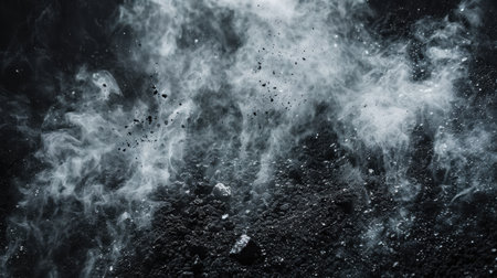 Intense digital composition employs swirling particle effects and stark chiaroscuro contrasts to evoke turbulent power and atmospheric drama. Suited for sci-fi film titles, geological disaster simulations, fantasy game assets, or environmental awareness campaigns targeting educators and digital creators. Layered grayscale tones provide dynamic depth for seamless inte... AI-generated illustration.