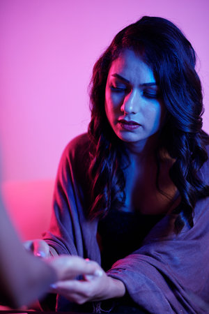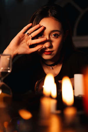 fortune teller young woman in the saloon calls the spirits. horizontal photo