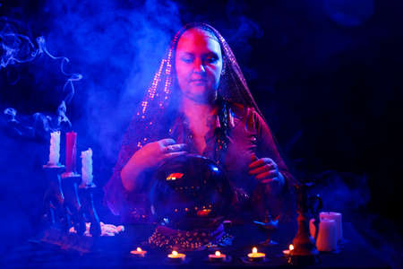 Portrait of fortune-teller in a dark room