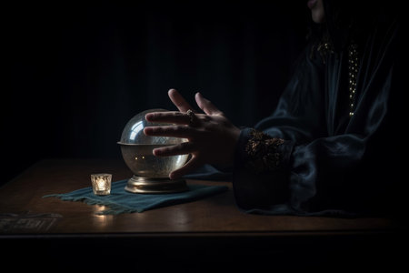 Fortune teller with crystal ball reading future, closeup