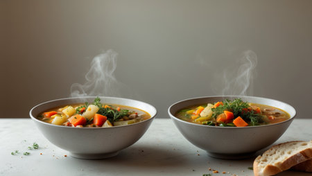 AI Generated. Two Bowls of Hearty Vegetable Soup Ready to Serve