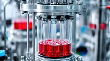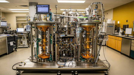This image showcases an advanced bioreactor system in a laboratory setting, emphasizing the integration of technology and design for optimal research and production processes.