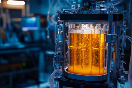 High-tech lab capturing advanced fermentation at twilight. Powered by generative AI