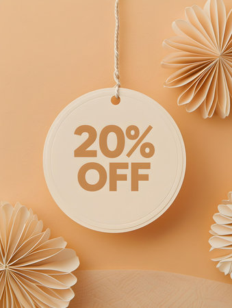 Beige '20% OFF' Promotional Sign on a Beige Background