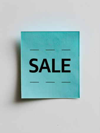 Black 'SALE' Text on a Cyan Square Paper Note. White Background