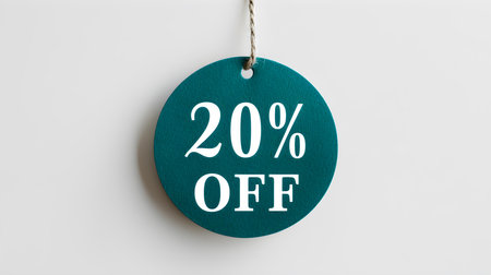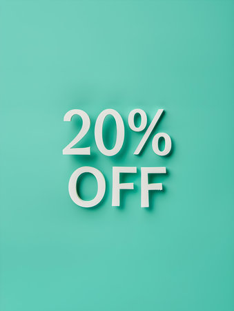 White '20% OFF' Promotional Sign on a Turquoise Background