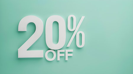 White '20% OFF' Promotional Sign on a Light Green Background with Copy Space