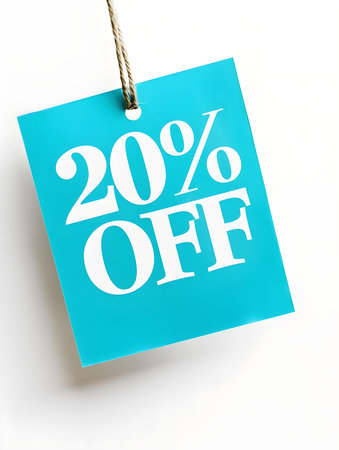 White '20% OFF' Promotional Sign on a Light Blue Background