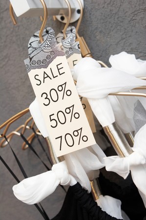 Sale labels on clothes hangers