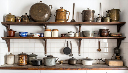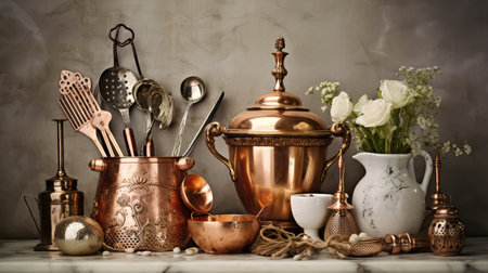 Vintage Treasures: Timeless Kitchenware on a Rustic Wooden Table