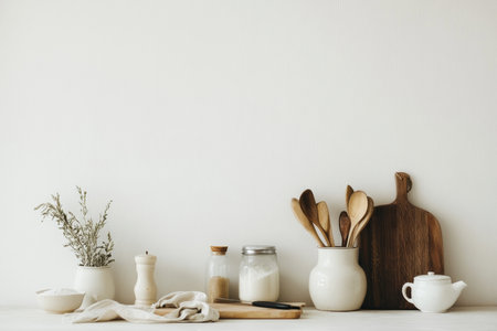 Minimalist kitchen setup simple ingredients and tools highlighting the essence of home cooking