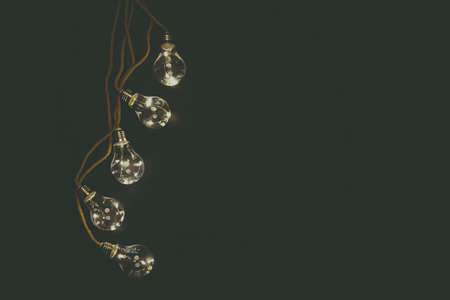 Warm light illuminated garland close up on dark background