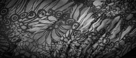 silk fabric, black and white abstract lines. The magical shape of an abstract black and white pattern. Retro modern decor, textile art, design, texture, background, pattern