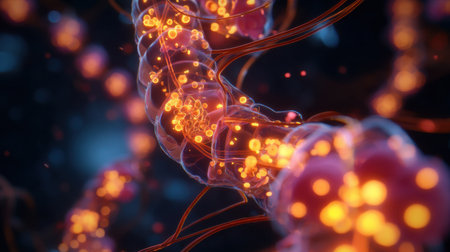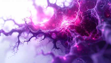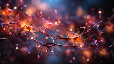 Macro shot of electrical signals between nerve cells of intramuscular tissue. Neurobiological abstract background. Generative AI