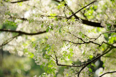 Closeup image of white flowers, Chinaberry (melia azedarach), shot in Taiwan, Asia.