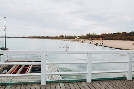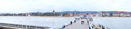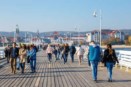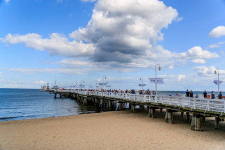 Sopot, Poland, October 13, 2018: View of the longest wooden pier in Europe. The Sopot Pier was built in 1827