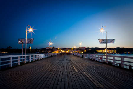 Wooden pier Molo in Sopot town, Baltic Sea, Poland