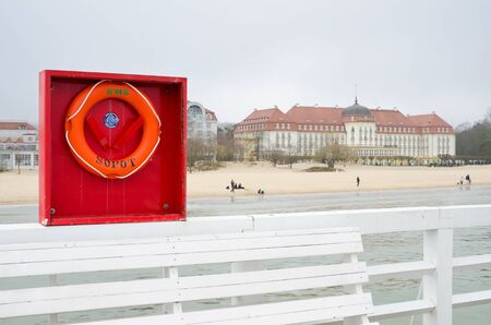 Lifebuoy on the pier in Gdynia Orlowo. Baltic Sea, Poland