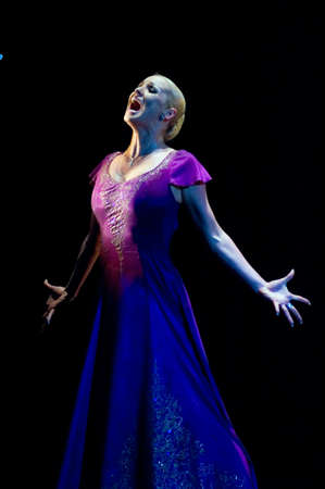 DNEPROPETROVSK, UKRAINE – APRIL 28: Anastasia Volochkova performs during the «SHORT STORIES ABOUT LOVE» ballet at Opera and Ballet Theatre on April 28, 2010 in Dnepropetrovsk, Ukraine.