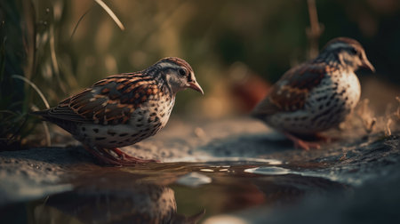 Nature beauty reflected in the tranquil pond, ducks in focus generated by artificial intelligence