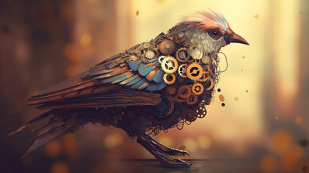 A mechanical bird with gears and springs. Fantasy concept, Illustration painting. Generative AI
