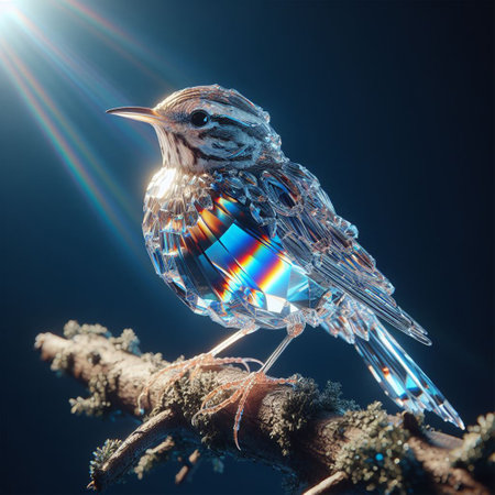 a bird perched on an ivy-covered branch, captured in a realistic still life with dramatic lighting. this stunning photograph showcases the expertise of a zbrush object portraiture specialist. the gray and amber tones add depth to the characterful animal portrait. a contest winner, this multi-layered image is a true masterpiece. ai generated