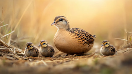 Female bird feeding babies birds, digital illustration artwork, animals, birds