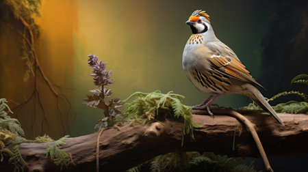 closeup shot of a beautiful bird on a mossy rock in nature.generative ai