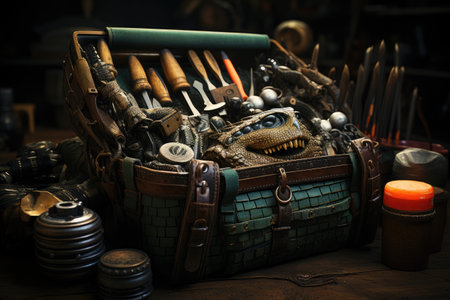 Experience the rich legacy of craftsmanship with this intricate digital illustration that celebrates the fusion of traditional artisan tools from different cultures and eras. The artwork showcases a delicate calligraphy brush, a sculptor's chisel, a jeweler's precision instruments, and a blacksmith's anvil and hammer, symbolizing the diverse range of artistic skills passed down through generations. Set against a neutral background, the vibrant colors add visual impact and emphasize the importance of these tools in preserving cultural heritage and inspiring human creativity. Immerse yourself in awe and appreciation as you witness the timeless artistry embodied in these exquisite tools.