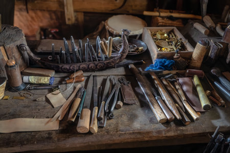 artisans tools for gold foil beating, created with generative ai