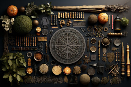 Illustration of Wiccan symbols and tools.