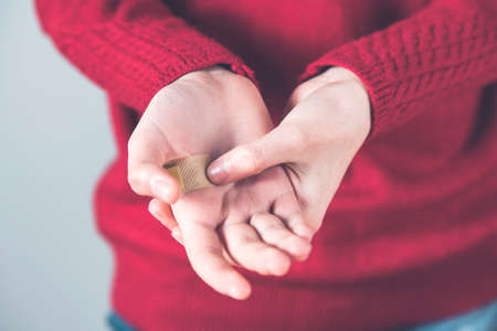 woman hand bandage on the gray background