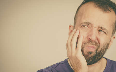 emotional man medicine toothache and health problems light background