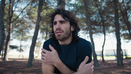 Man holding his sore shoulder trying to relieve pain