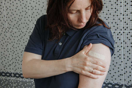 Vaccinated Woman Showing Arm After Vaccine Injection