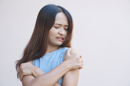 Asian woman having shoulder pain