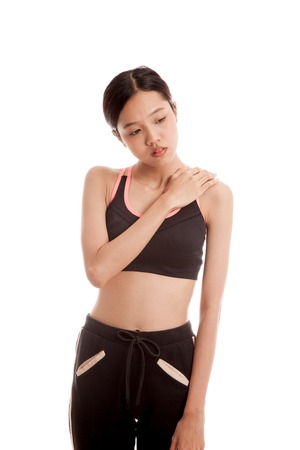 Shoulder pain, Asian young woman with sport injury