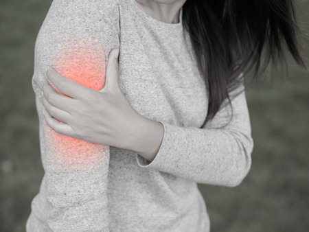 Closeup female's arm pain and injury. Health care and medical concept.