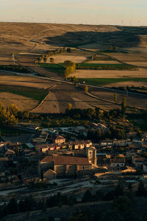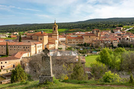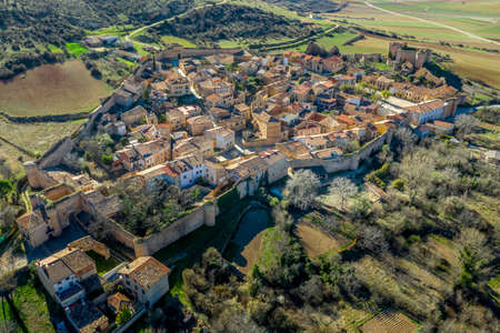 Palazuelos aerial panorama view of medieval walled town in Guadalajara Spain
