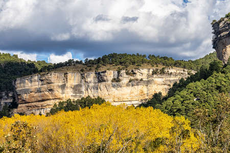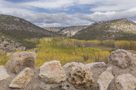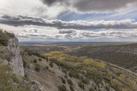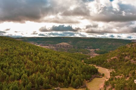 Panoramic view of the Serrania de Cuenca at Una in Spain. Hiking trails La Raya and El Escaleron in Una, Cuenca, Spain