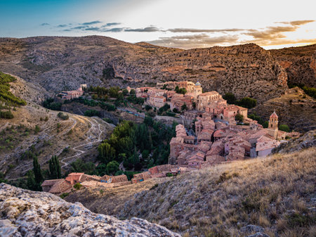 A scenic high angle shot of the town of Albarracin in Teruel, Aragon, Spain