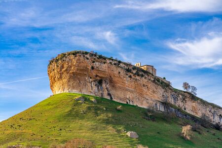 A beautiful view of Mozarabic hermitage of Santa Cecilia of the ninth century in Barriosuso, Burgos, Castile and Leon, Spain